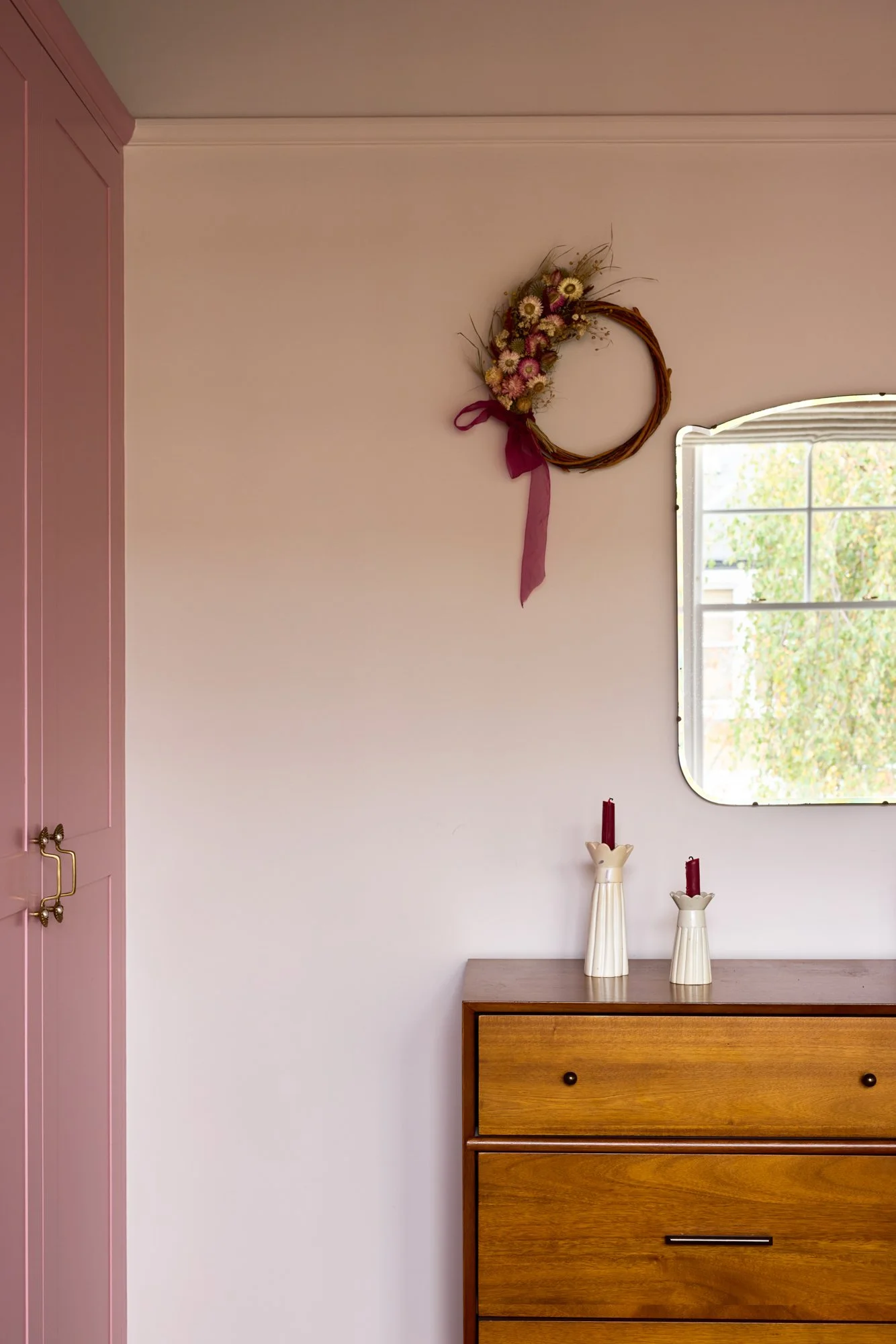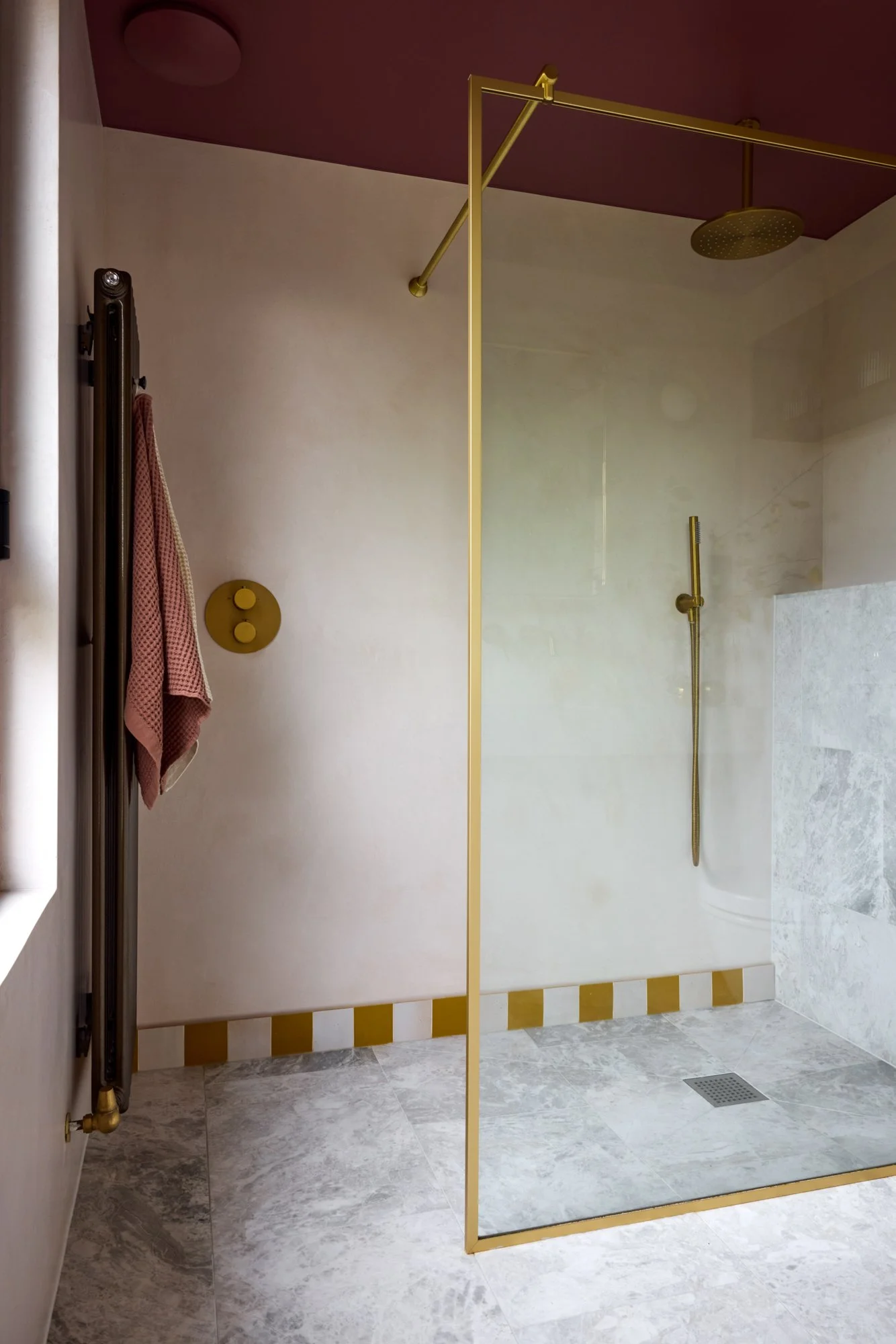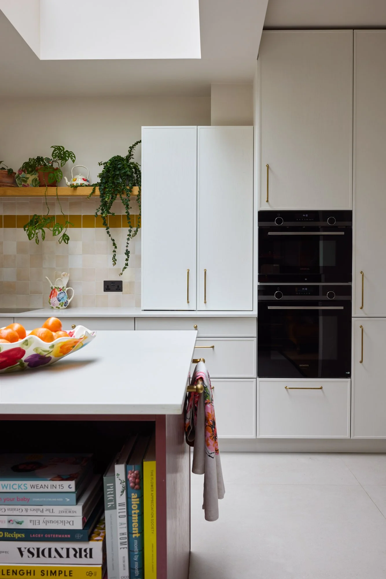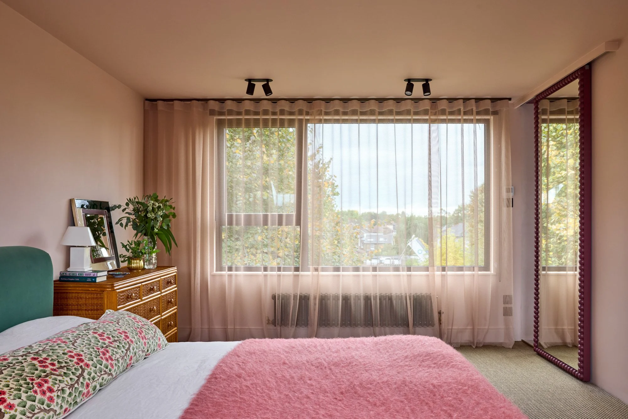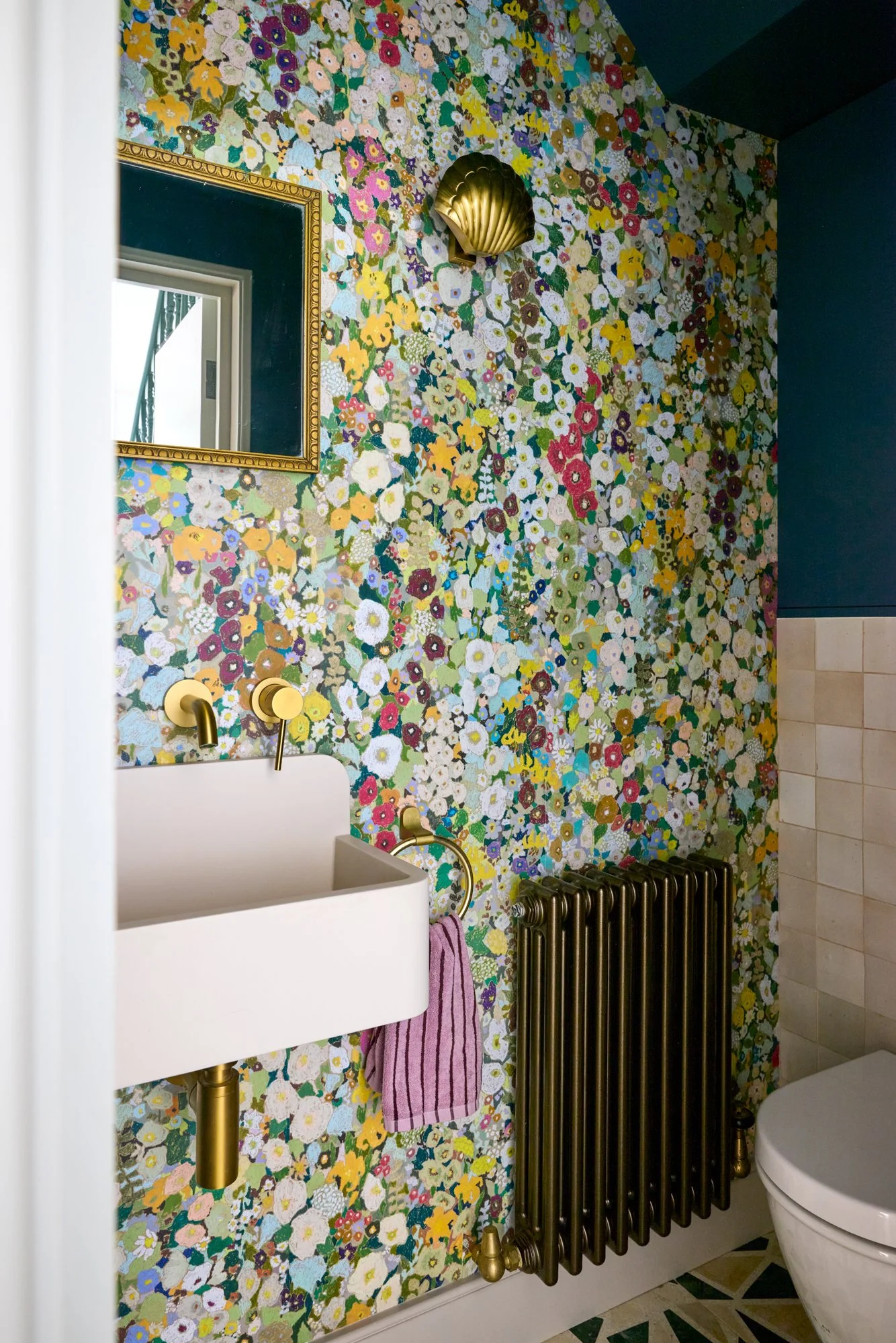 No surface here is plain white; even the lightest walls carry soft warmth — plaster pinks, greens and earthy neutrals. Zellige and terrazzo tiles meet marble, brass and timber. Reclaimed fireplaces and second-hand furniture sit alongside bespoke pieces, creating a healthy balance between what’s new, renewed and rediscovered. Despite its richness, the house feels uncluttered — a reflection of Sarah’s patient, conscious way of bringing only what truly belongs.